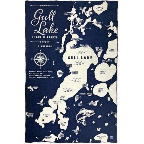 Faribault Mill has been a testament to American craftsmanship for over 150 years in a historic mill nestled along a Minnesota river. The Faribault Mill Lake and City Maps Collection are made with lake and city maps woven in wool. Whether it’s your favorite lake or memorable vacation spot, wrap yourself in fond memories with the Gull Lake Wool Throw.